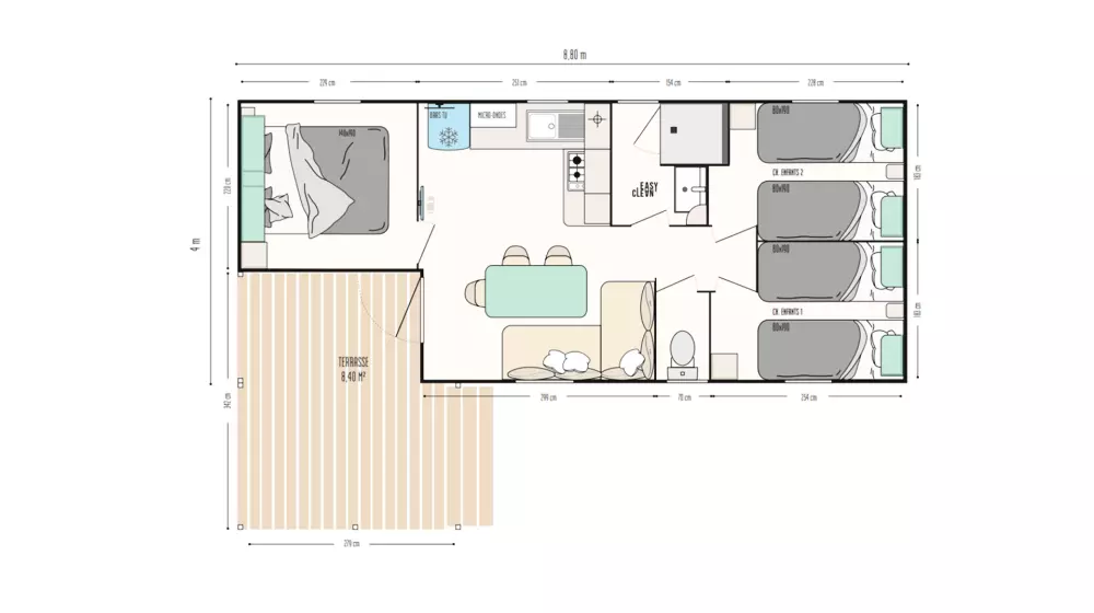 • Club enfants : gratuit, 4 à 10 ans, ouvert uniquement haute saison, ouvert du 5 juillet au 28 août
