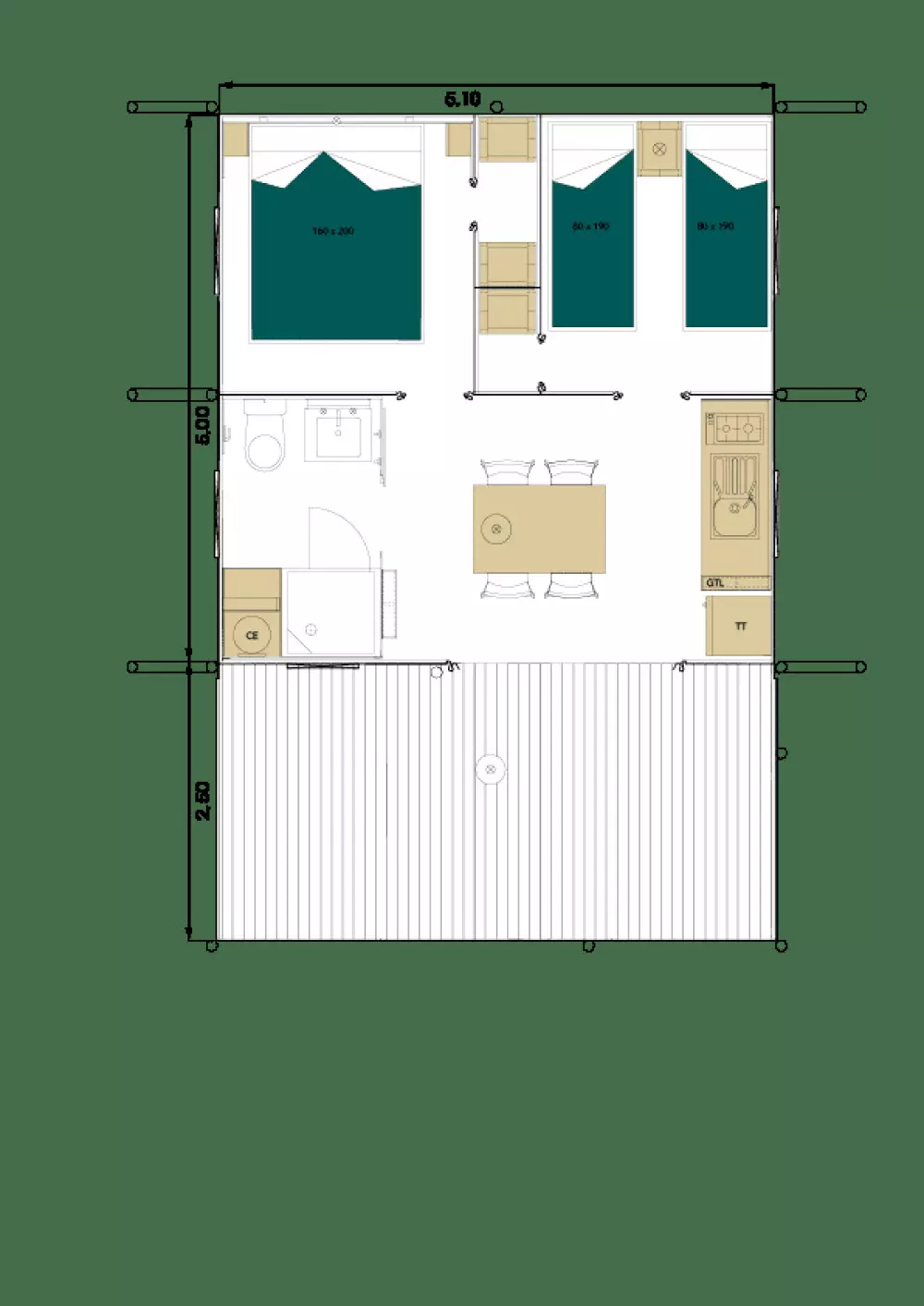• Accès Plage : 2 km