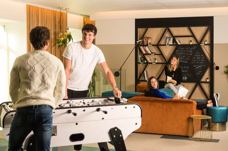 Sur place, l'établissement est récent et moderne, la décoration tendance et graphique des parties communes les rendent agréables. Ce sont des endroits faits pour se retrouver et pour partager. Les logements sont tout équipés avec coin cuisine et coin bureau pour que vous puissiez vous poser au calme dans votre logement et profitez de votre séjour au mieux.