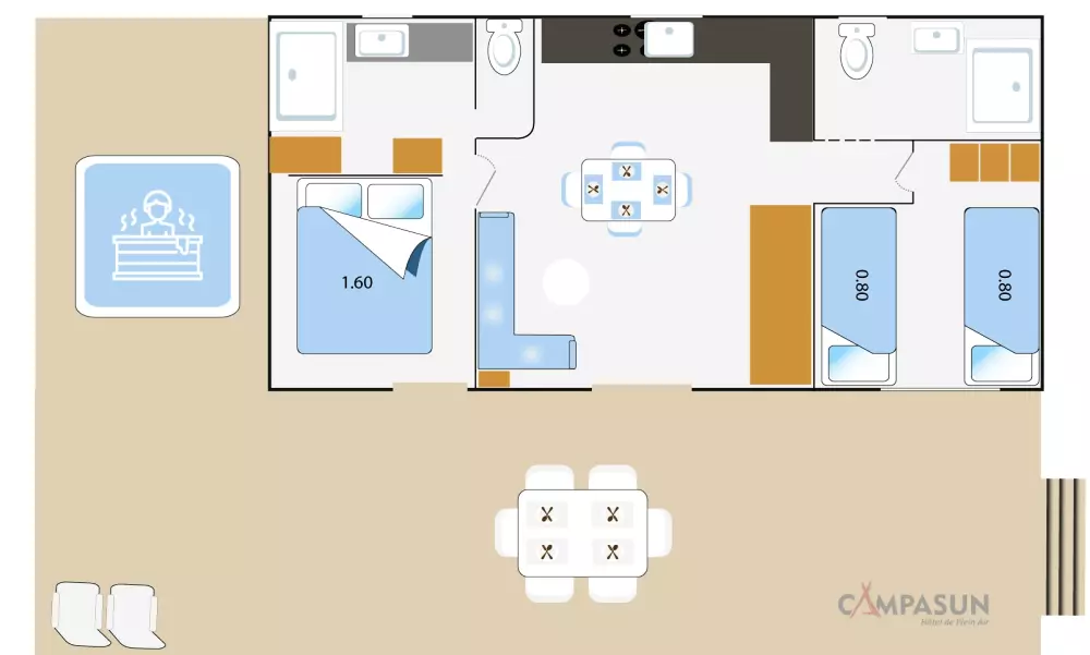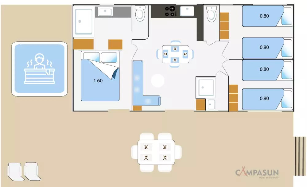 Le gros plus : vous trouverez dans les sanitaires collectifs des Wc auto-nettoyants pour garantir la propreté.
