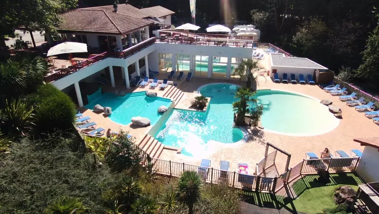 L'espace aquatique est composé de 400 m² de bassin comprenant une piscine extérieure chauffée de 200 m² et de sa pataugeoire. Un espace Balnéothé-rapie de 200 m², un bassin de détente couvert et chauffé. Cet espace est composé d'un jacuzzi, de ban-quettes anatomiques, de carrés massants, d'un espace de natation, de cols de cygne et d'un bain à remous. Sauna et hammam (payants). Salle de musculation/remise en forme pour les + de 18 ans. Aires de jeux. Terrain multisports, ping-pong, pétanque, …