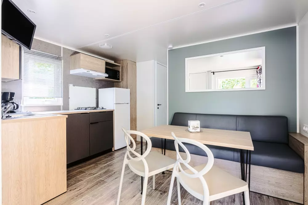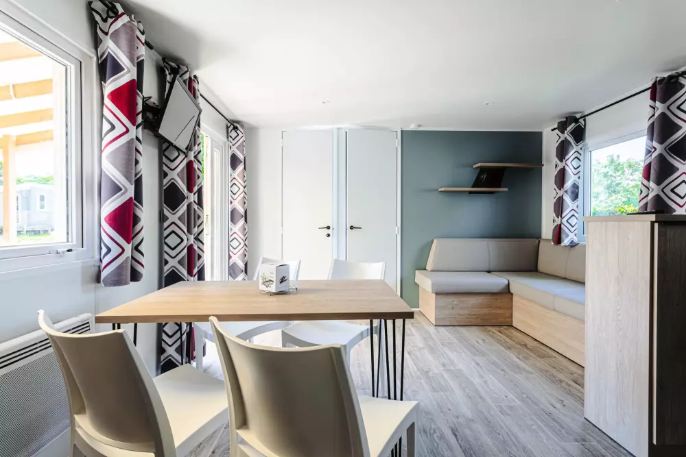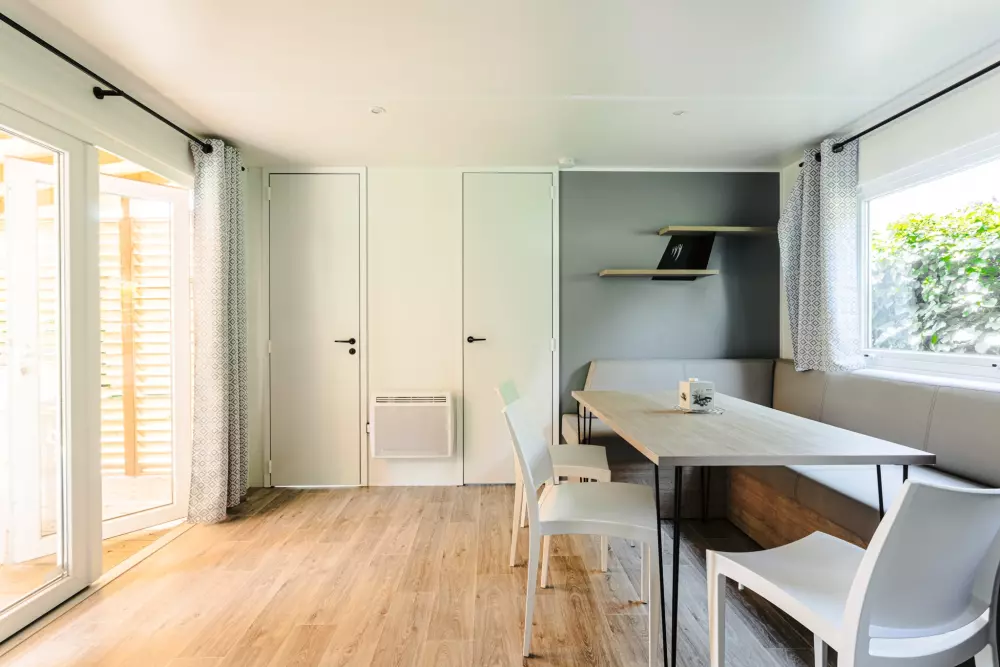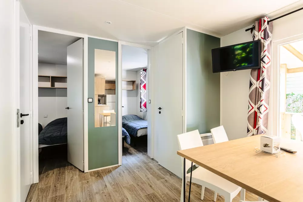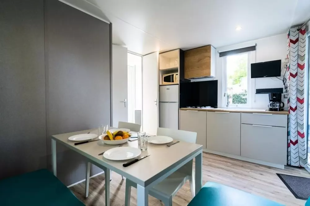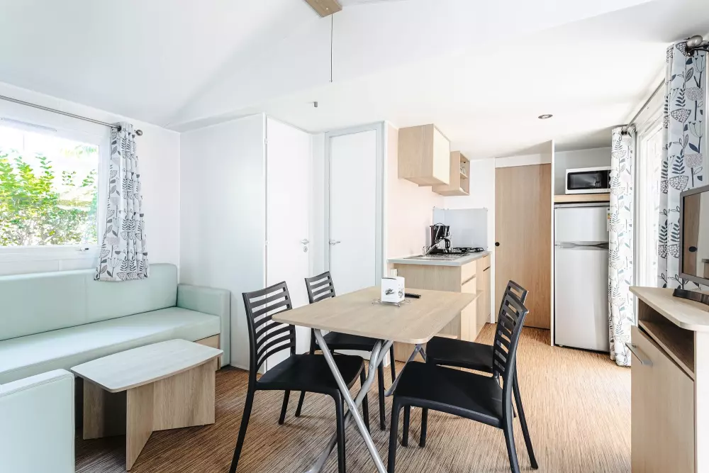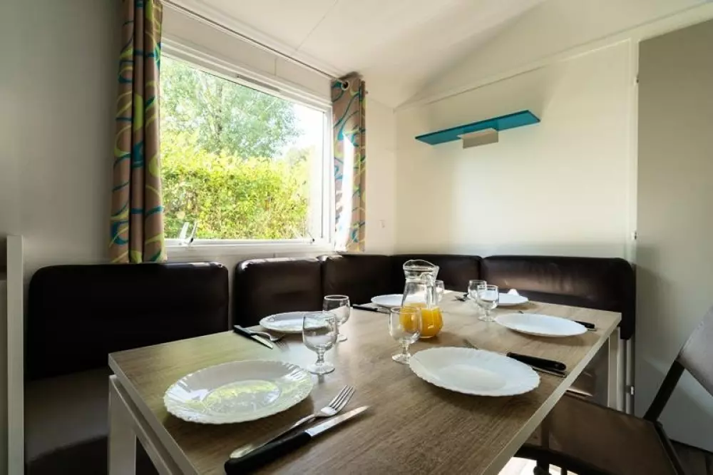 Une expérience aquatique inoubliable ! Avec deux pataugeoires (une extérieur et une intérieur) spécialement conçues pour les plus jeunes. À quelques pas de votre mobil-home ou de votre emplacement, plongez dans l'aventure en dévalant l'un de nos trois toboggans d'extérieur ou le toboggan intérieur pour des sensations fortes garanties.