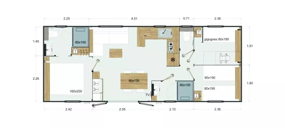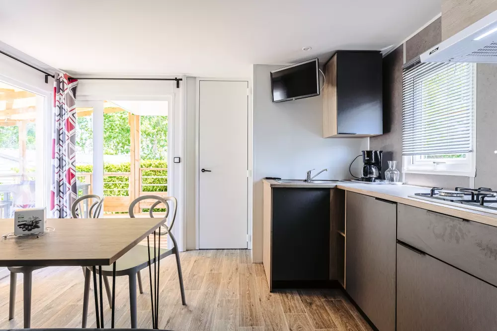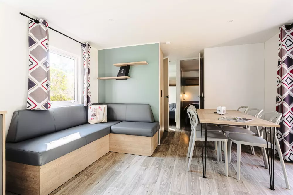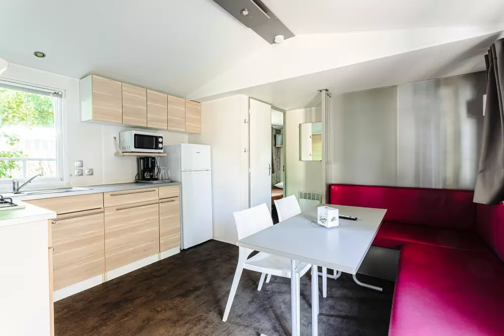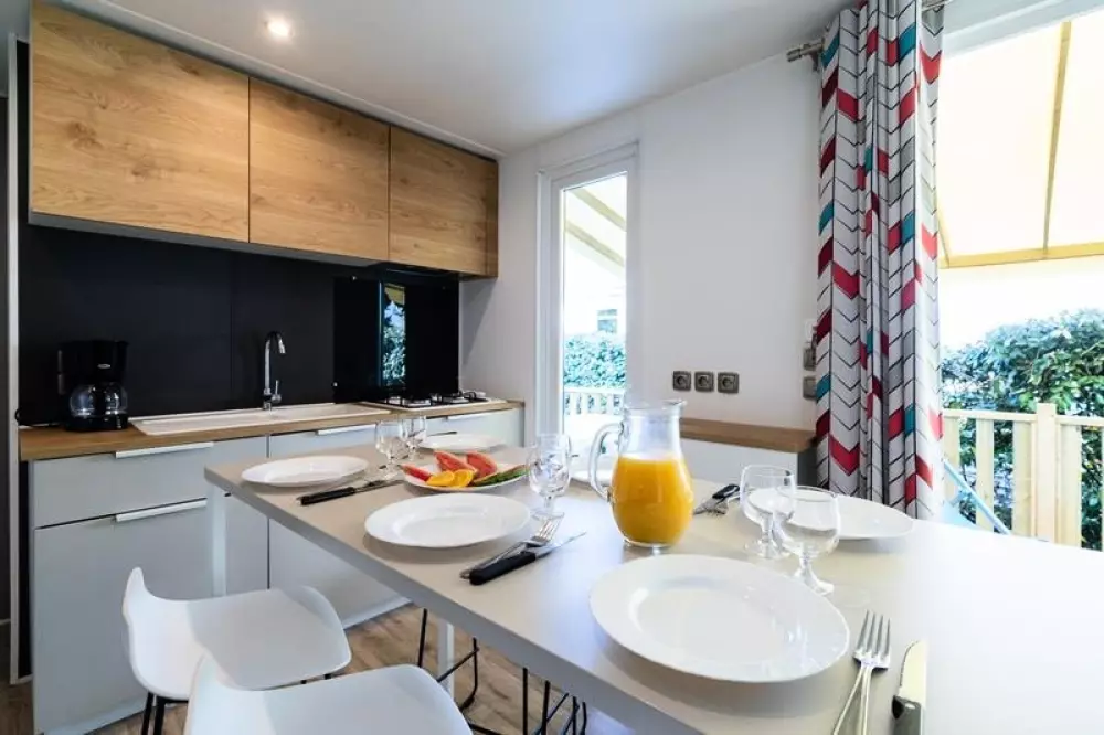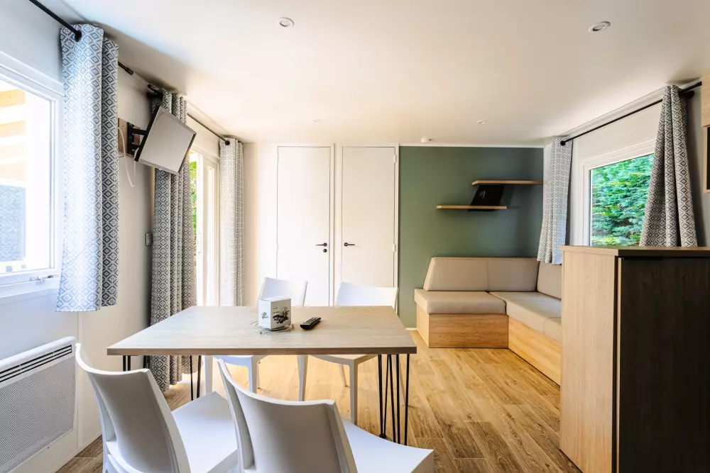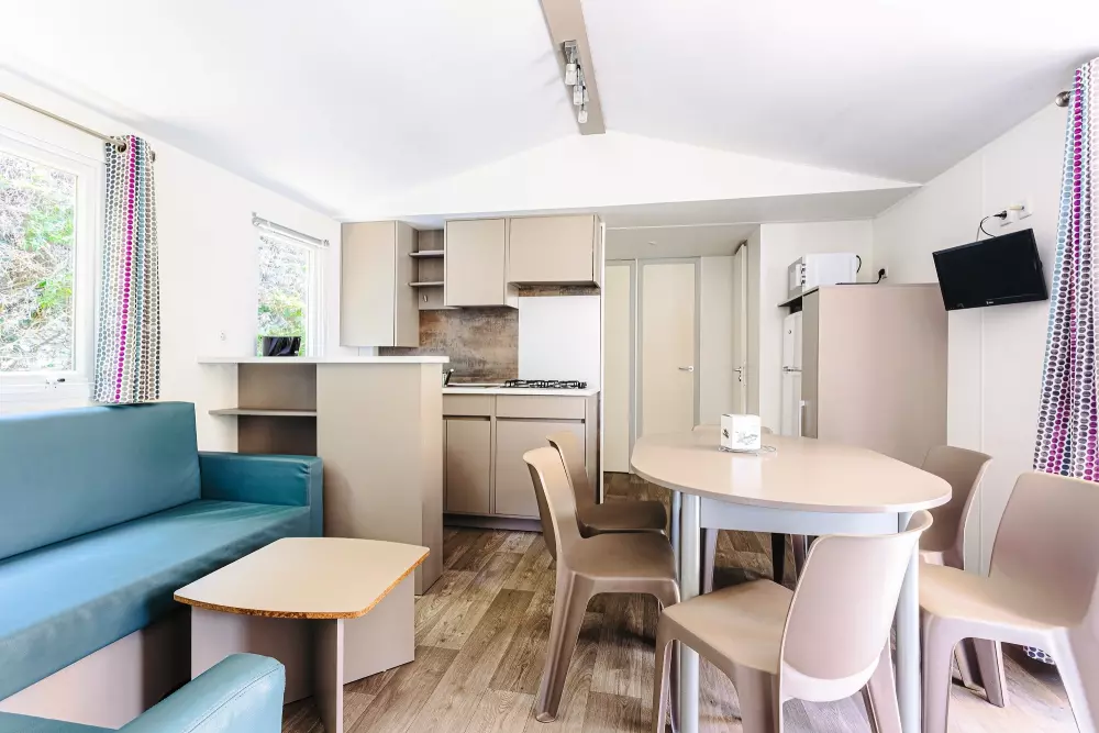 Une expérience aquatique inoubliable ! Avec deux pataugeoires (une extérieur et une intérieur) spécialement conçues pour les plus jeunes. À quelques pas de votre mobil-home ou de votre emplacement, plongez dans l'aventure en dévalant l'un de nos trois toboggans d'extérieur ou le toboggan intérieur pour des sensations fortes garanties.