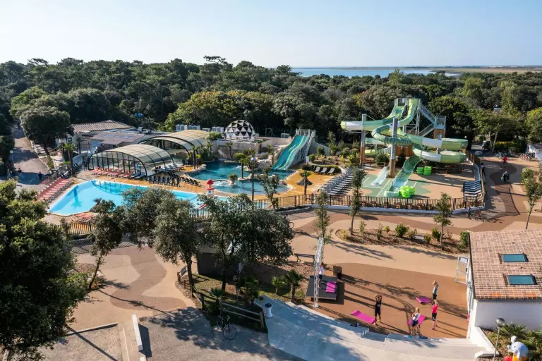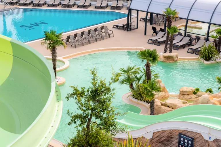 - Parc Aquatique : Espace aquatique de 700m² : 3 bassins, piscine couverte, piscine extérieure chauffée, 5 toboggans, pataugeoire, jeux aqualudiques, banquette anatomiques, rivière de marche - Piscines ouvertes et chauffées toute la saison