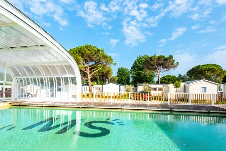• Espace aquatique avec piscine chauffée et pataugeoire avec toit amovible, bassins à jets, jardins d'eau et toboggans (aquatube et bouée)