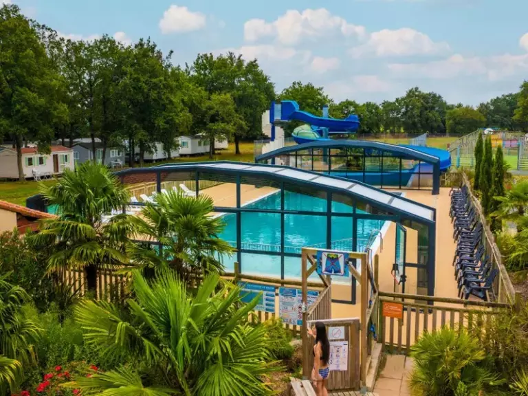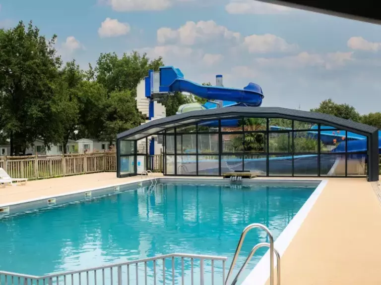 Lors des beaux-jours, rendez-vous sur l'espace aquatique du camping : pataugeoire, piscine extérieure chauffée, toboggan aquatique et solarium.