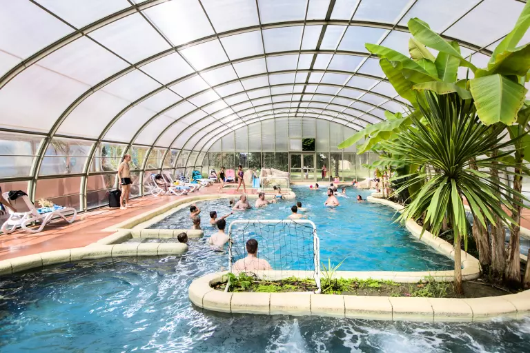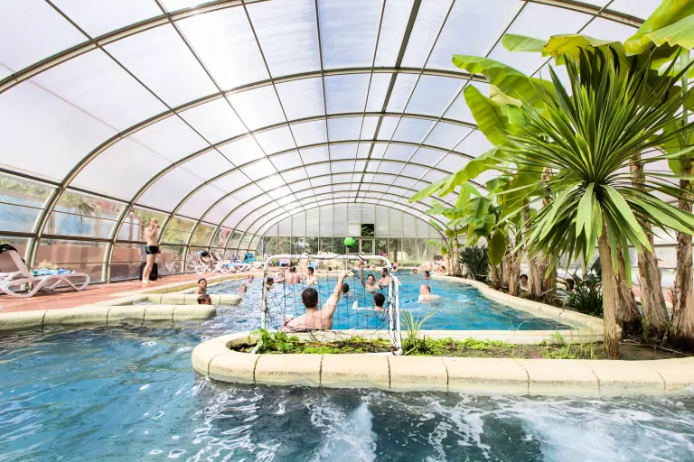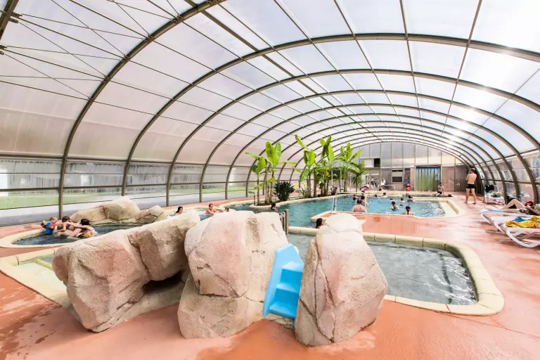 Profitez sur place d'un très bel espace aquatique paysagé composé d'un aménagement extérieur ouvert à partir de début juin avec bassins, toboggans et pentes à glisse ainsi que d'un espace couvert et chauffé ouvert dès l'ouverture du camping, avec piscine, banquettes à bulles, rivières sauvages.