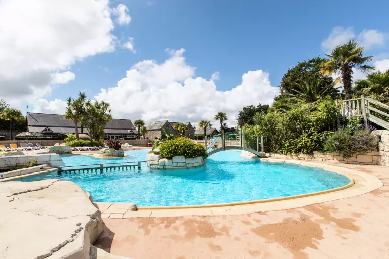 Saint Malo à seulement 4500m de la mer et vous accueille dans le parc d'un magnifique château. Profitez sur place d'un très bel espace aquatique paysagé composé d'un aménagement extérieur avec bassins, toboggans et pentes à glisse ainsi que d'un espace couvert et chauffé avec piscine, banquettes à bulles, rivières sauvages.