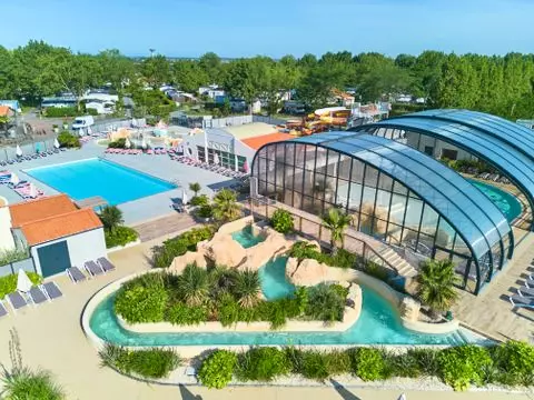 - Dès l'ouverture du camping, vous profiterez de l'espace aquatique composé d'une piscine extérieure, d'une piscine intérieure, une piscine sous dôme avec une rivière sauvage, des toboggans et des espaces pataugeoires avec des jeux aqualudiques pour les enfants. En haute saison, tout le parc est chauffé. Un véritable paradis !