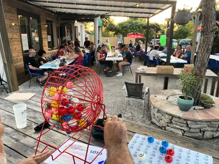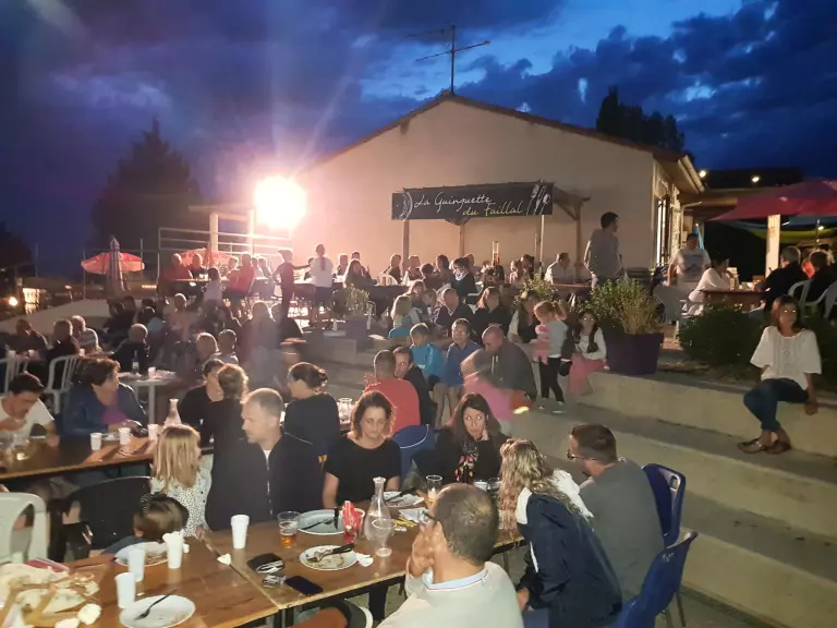 Barbecue collectif. Ensemble de commerces au bourg de Montpezat de Quercy. * avec participation