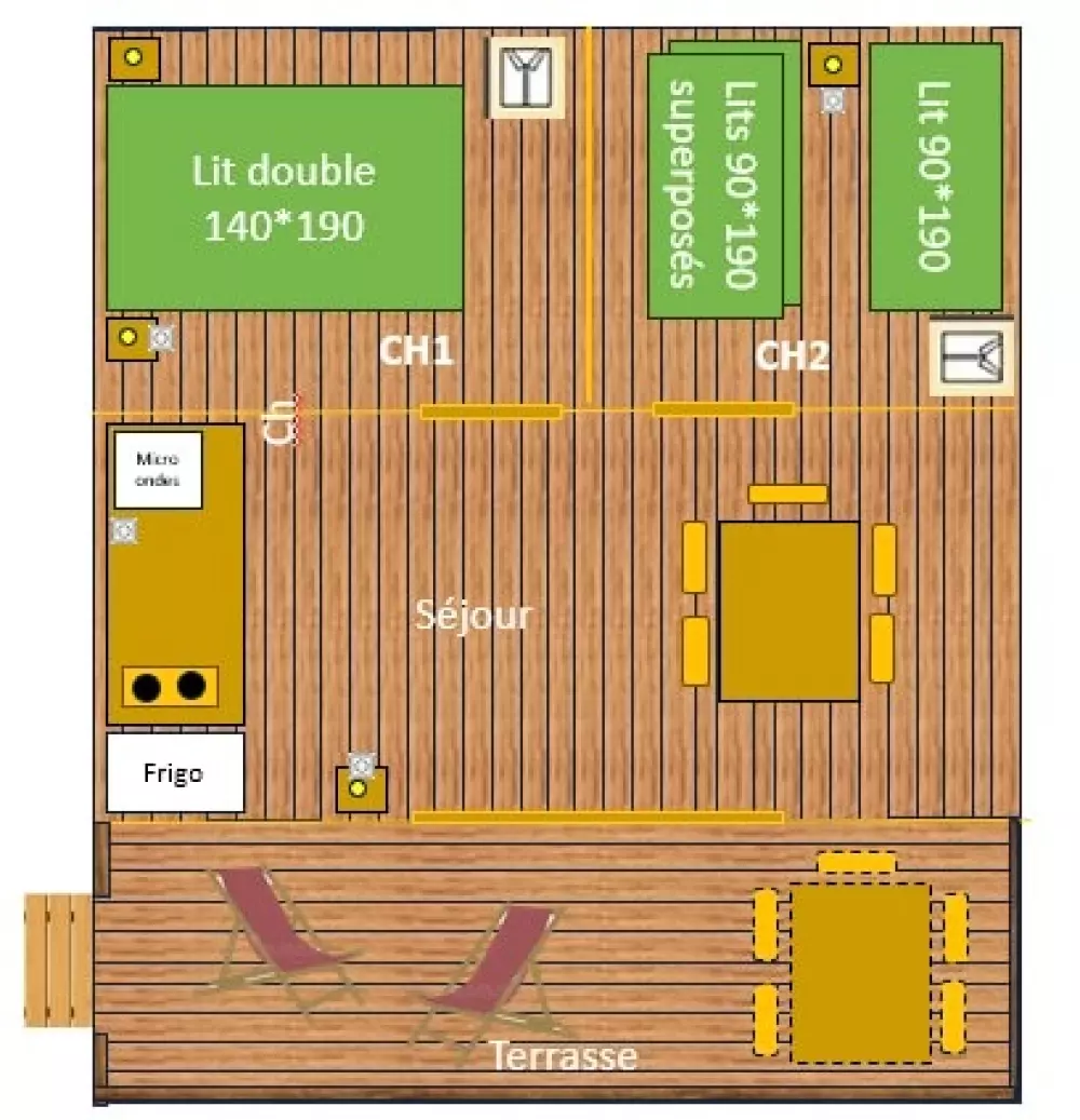 Emplacements camping , Mobilhomes, Cottages, Gites, Chalets, Tentes lodge, situés dans le parc de loisirs du Faillal.