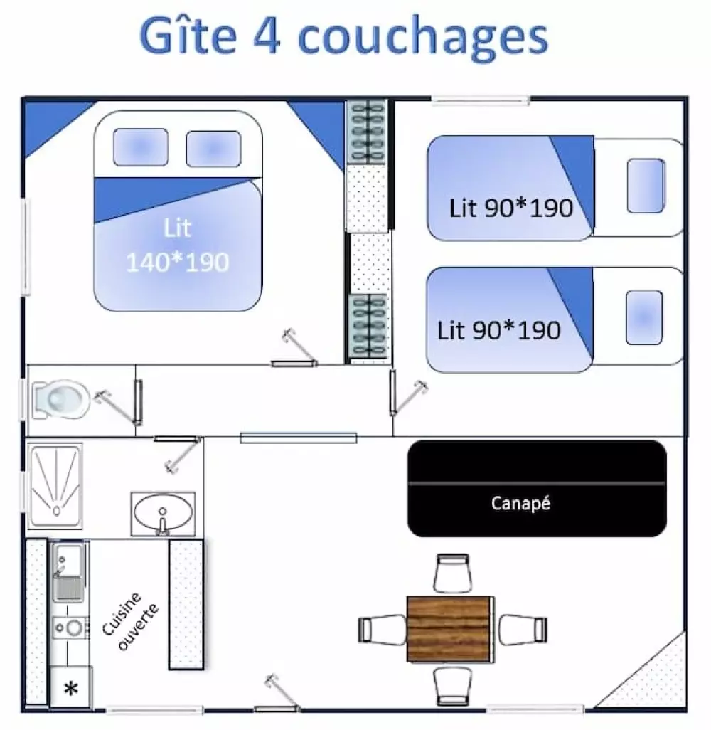Services : Location de lit bébé* et chaise haute* (sur réservation auprès du site). Espace buanderie : lave-linge*.