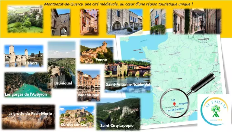 Cette cité médiévale située entre Cahors et Montauban vous ouvre ses portes pour vous faire découvrir son patrimoine. Découvrez la collégiale du XIVe siècle, le monastère des Ursulines, et participez à la fête des vins du Quercy avec ses fameux VDQS au début du mois d'août. A ne pas manquer : St Cirq Lapopie (38 km), Rocamadour (83 km), Toulouse (89 km), le Gouffre de Padirac (91 km), Conques (118 km) et les Gorges de l'Aveyron.