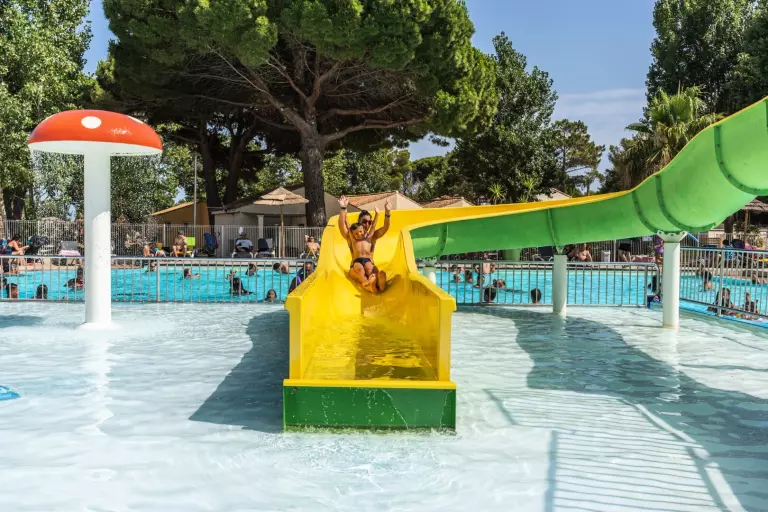 • Piscine extérieure avec pataugeoire, jeux d'eau et toboggans
