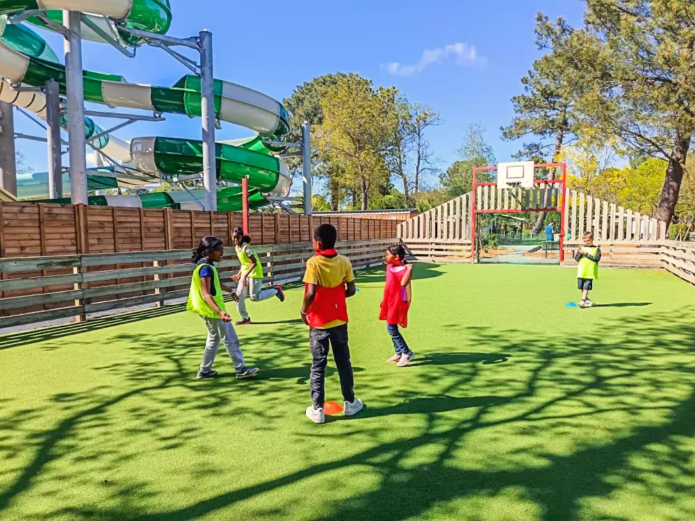 • Aire de jeux enfants avec structures gonflables et aire de jeux et terrain multisport