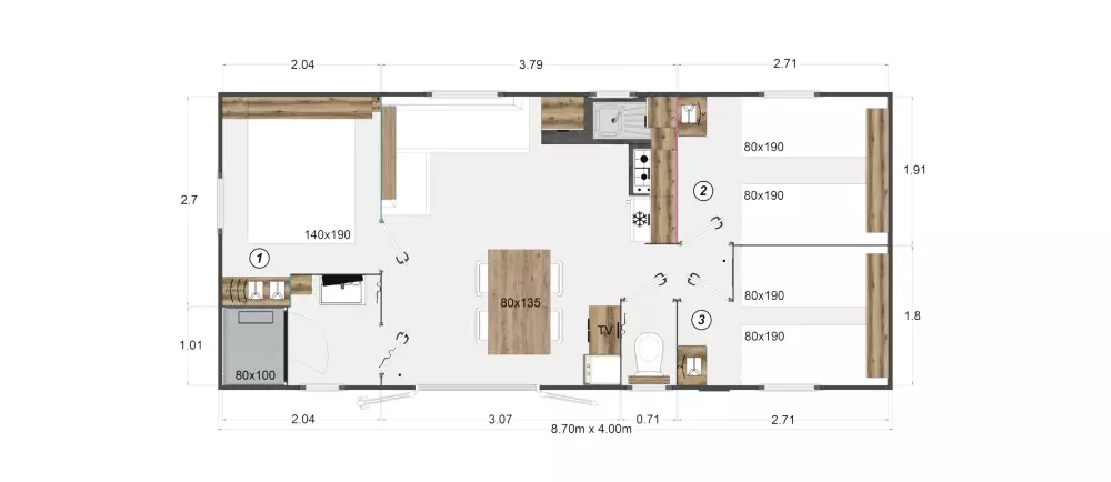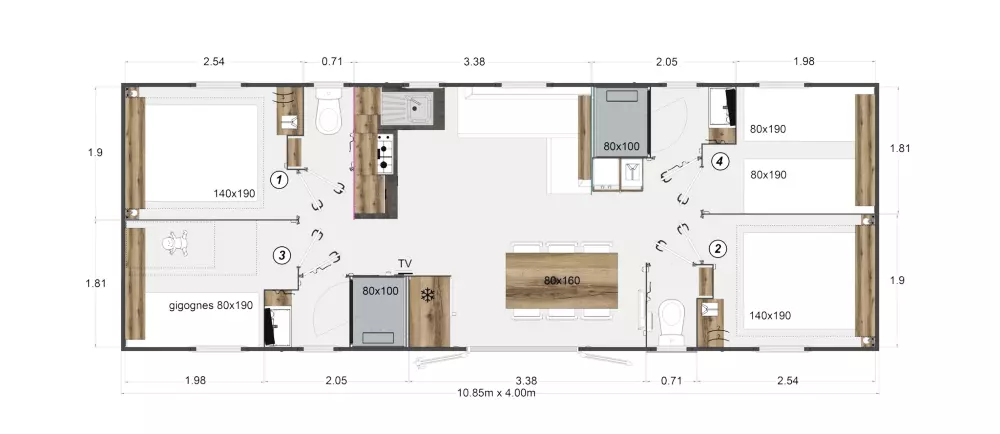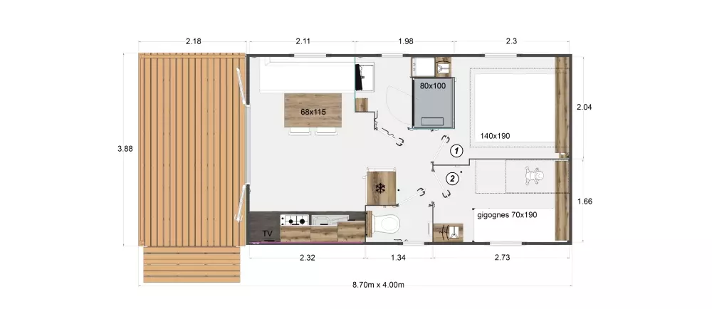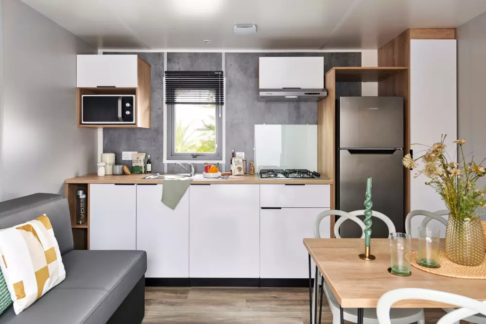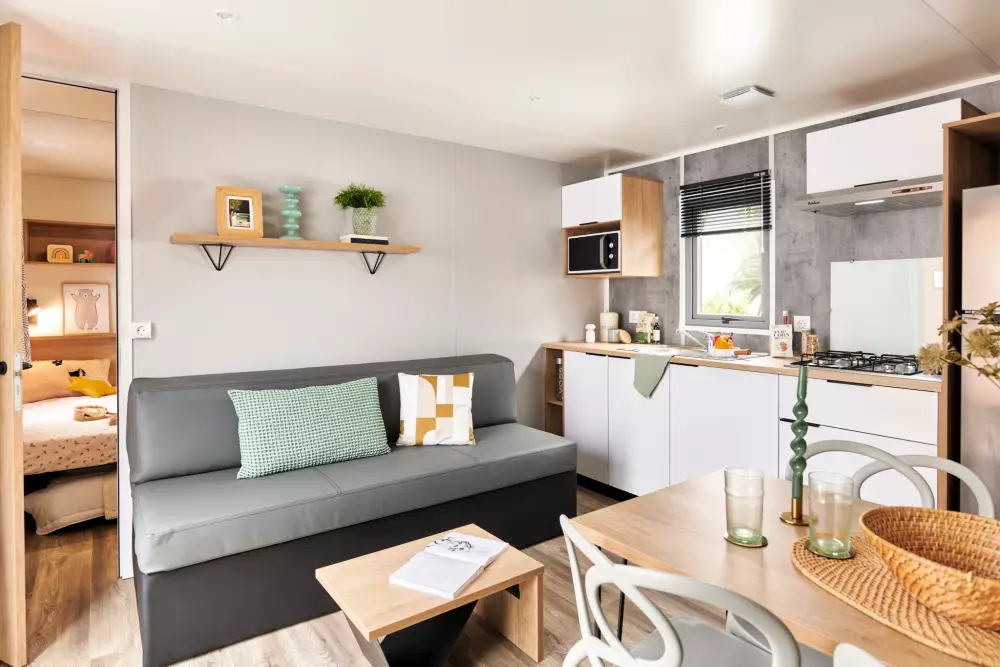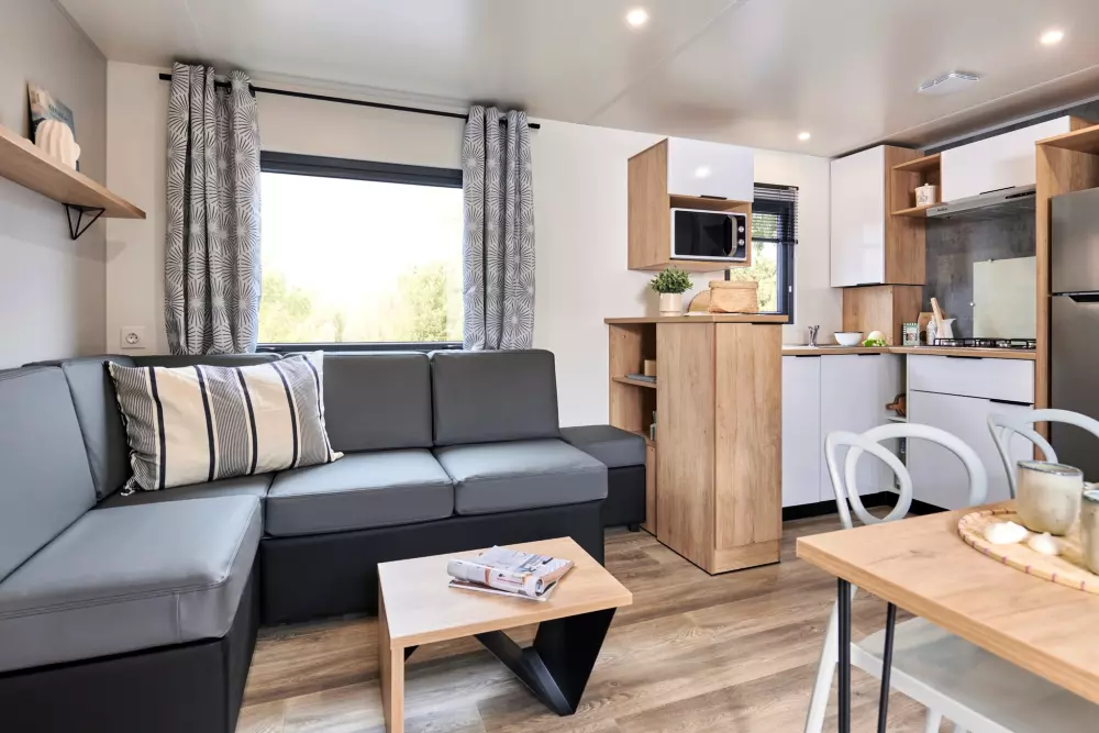 Nous proposons 3 types d'hébergements : LUXE SPA, Prestige et Eden. Nos options Prestige offrent des services haut de gamme, comme un lave-vaisselle, une télévision et la climatisation. La gamme Eden, elle, garantit un séjour agréable et cosy, avec tout ce qu'il faut pour votre bien-être. Puis notre gamme LUXE SPA, comprend un jacuzzi privatif sur la terrasse de votre hébergement !