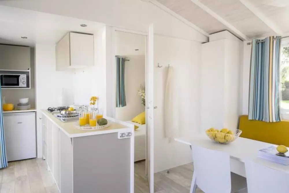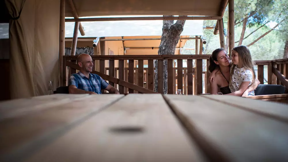 Vous passerez des vacances conviviales dans un cadre naturel au cœur d'une pinède ombragée à seulement 940m de la plage.
