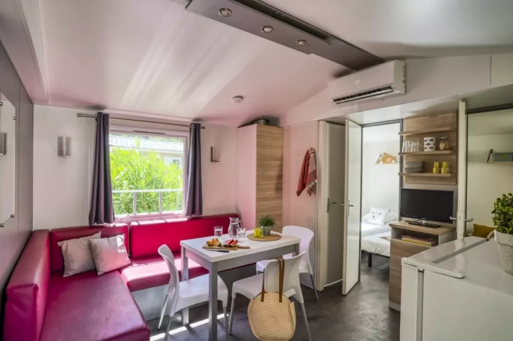 - Animaux admis : exceptés les Mobil-Home Confort 2 p., les Mobil-Home Confort 4 p., les Mobil-Home Charme Plus 4 p., les Mobil-Home Charme Plus 4 p. Premium, à condition qu’ils soient tenus en laisse et respectent les règles de propreté et de tranquillité du camping. Un tarif de 5€/nuit vous sera demandé. - à régler sur place
