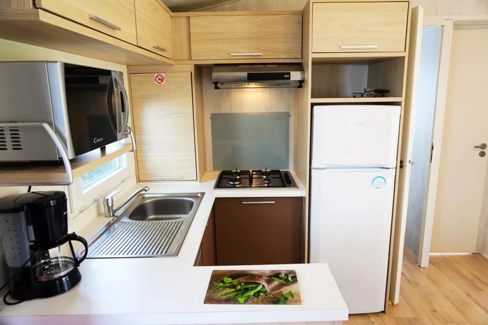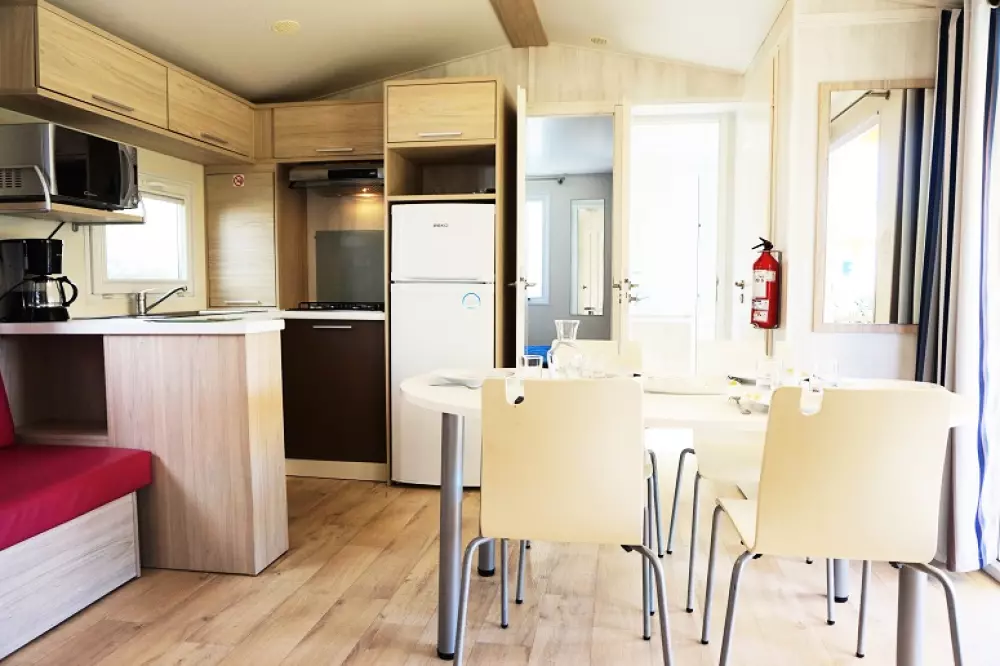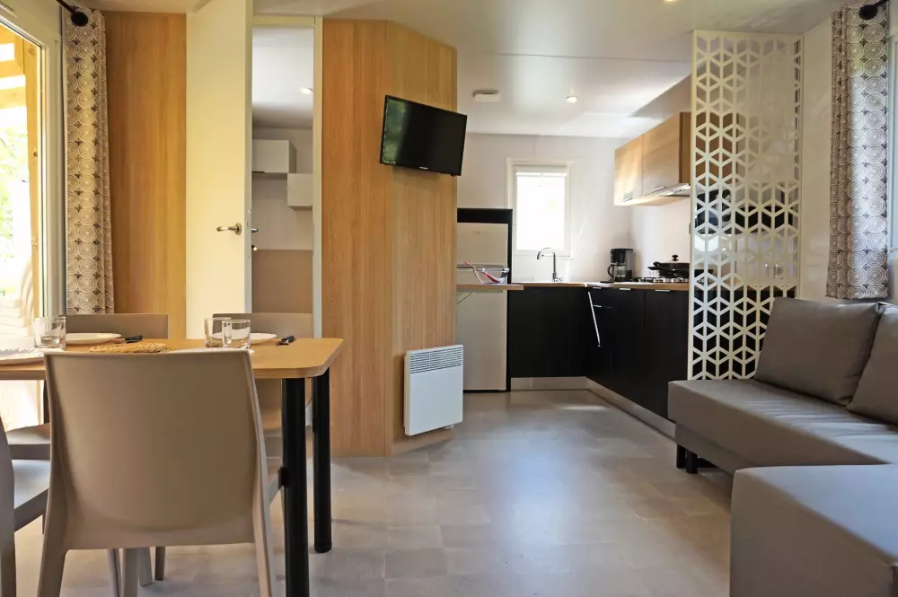 Confortablement installé dans un mobil-home équipé TV, vous êtes définitivement dans un bon camping et dans un « Beaulieu » !