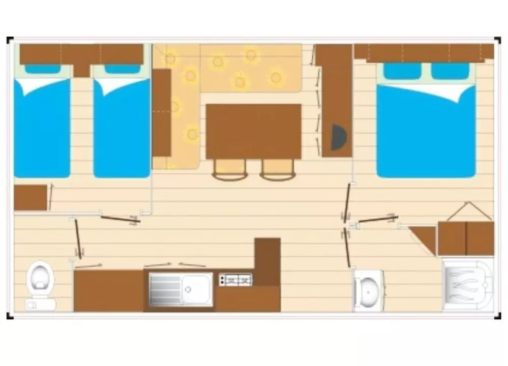 Afin de vous garantir d'agréables moments en famille, le camping dispose de deux espaces aquatiques pour vous détendre d'avril à septembre. Un premier espace avec une piscine couverte, ouvrable et chauffée avec bain à remous pour les adultes et pataugeoire pour les enfants. Il faut traverser une route, peu passante, pour y accéder. À l'extérieur, retrouvez également une piscine chauffée (selon les conditions métrologiques) avec pataugeoire aqualudique et toboggans aquatiques. Le second espace est composé d'une piscine extérieure chauffée (selon les conditions métrologiques), bain à remous et rivière de marche.