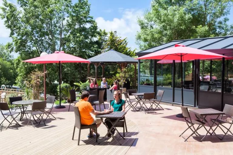 L'espace aquatique de 200 m² abrite une piscine couverte et chauffée, une pataugeoire avec jeux d'eau, et un solarium avec transats et parasols. Le soleil est au rendez-vous ? Le toit de la piscine se rétracte. Une journée mitigée ou des nuages menaçants à l'horizon ? Le toit se referme et vous continuez à vous décontracter dans le bassin à votre guise.