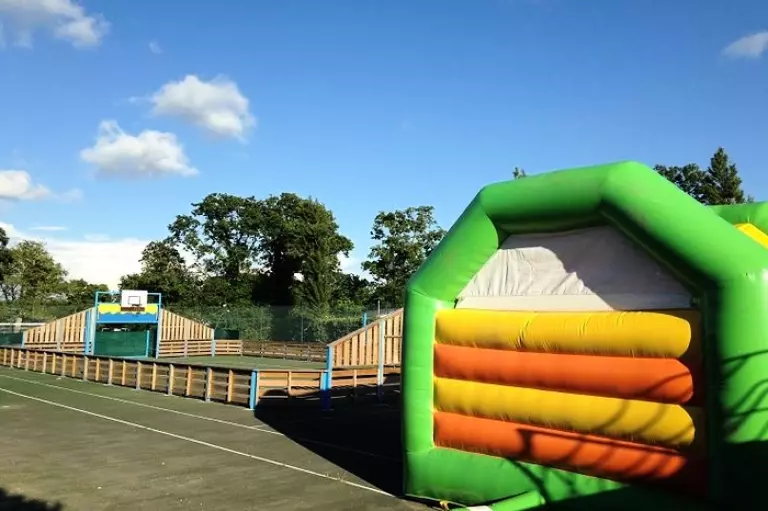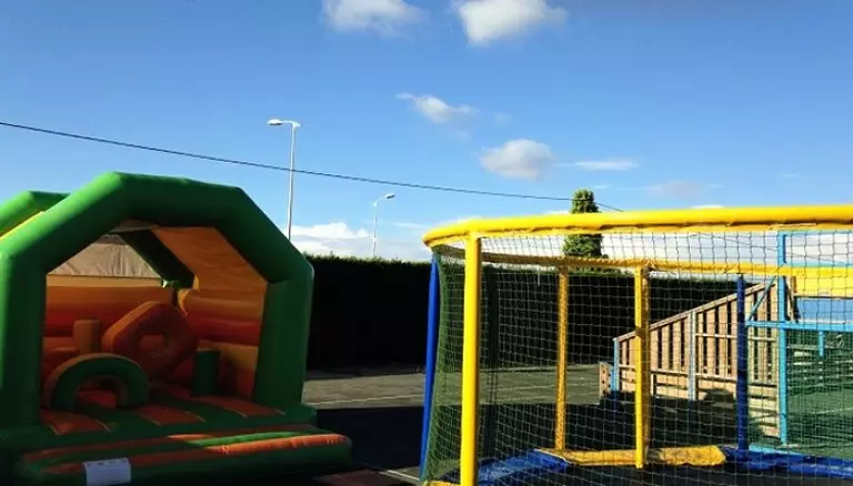 Un château gonflable est à leur disposition ainsi qu'un trampoline.
