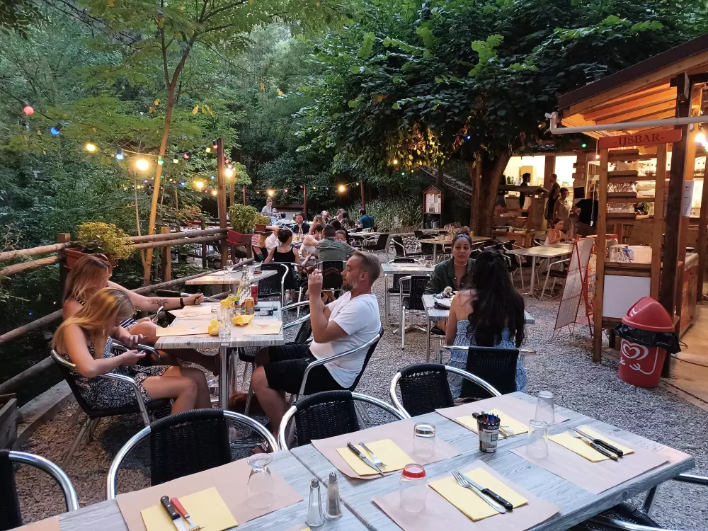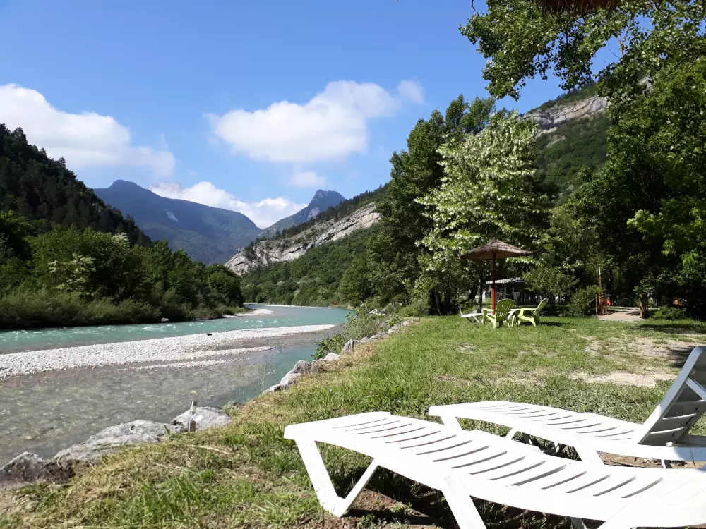 Véritable piscine naturelle, la rivière offre deux accès baignade sécurisés avec plages de galets et de sable, rochers pour sauts, bouées et matelas flottants, sans oublier des solariums aménagés avec chaises longues, parasols et tables de pique-nique, pour un confort optimal au bord de l'eau.