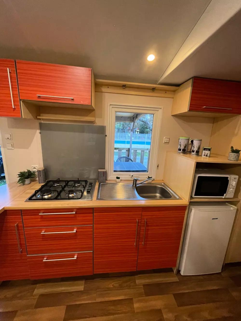 Tout d'abord, son environnement : un parc boisé d'érables et de bouleaux,une piscine chauffée, un village typique, des pistes cyclables à n'en plus finir et les plages d'Aquitaine, de quoi passer des vacances au calme dans une nature généreuse.