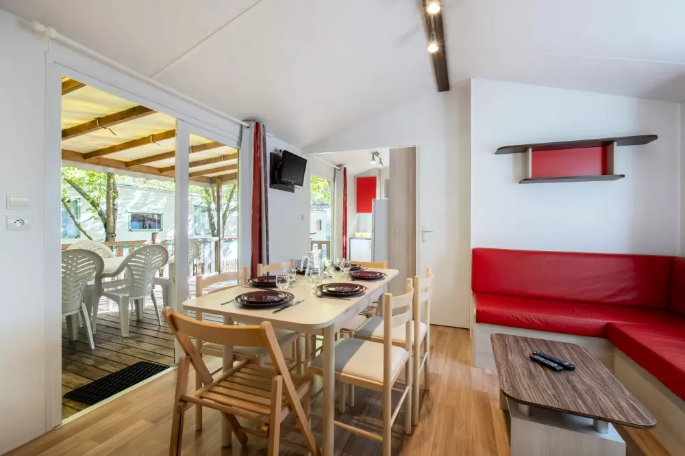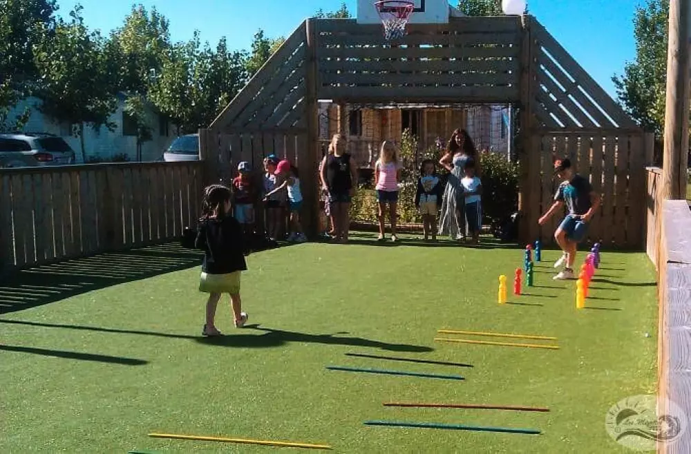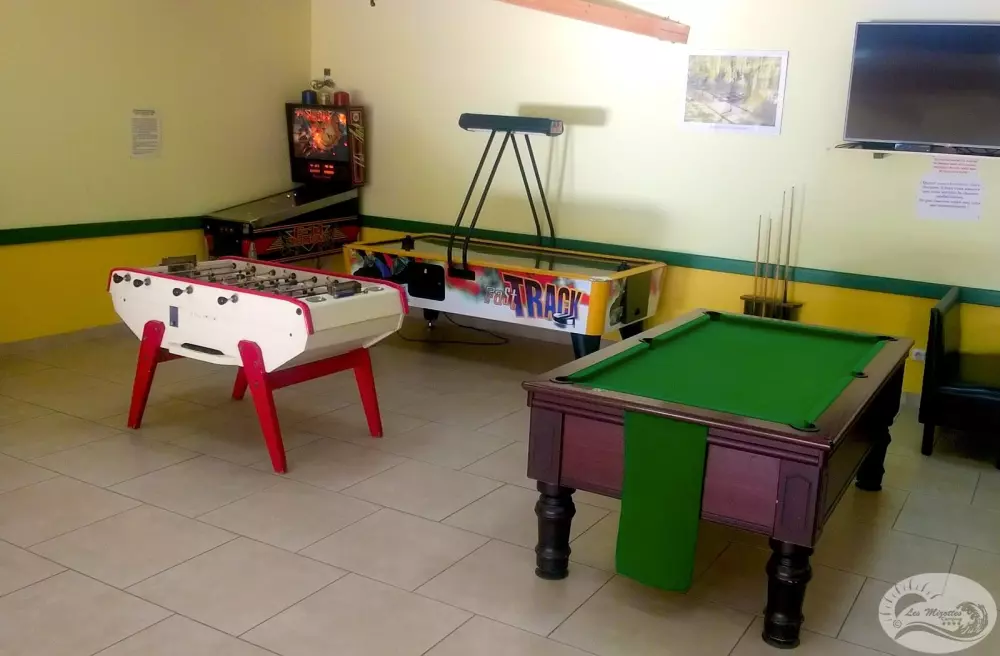 piscine avec pataugeoire incorporée, piscine intérieure chauffée,terrain multisports, aires de jeux enfants, trampoline, fitness extérieur, 2 terrains de pétanque, salle de jeux (billard, baby-foot, flipper, palet électronique, table de ping-pong), salle d'animation et restaurant, épicerie, dépôt de pain, 2 machines à laver, 2 séche-linge, Club Enfants/Ados en juillet et août, et en haute saison : repas à thèmes, karaoké, quizz musicaux, concerts, spectacles, soirées dansantes, loto.
