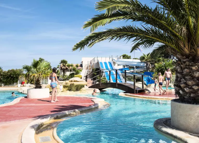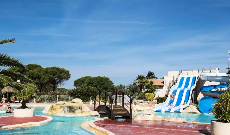 Profitez de notre superbe complexe aquatique. Faites quelques longueurs dans notre bassin de 700m2, amusez-vous dans notre espace ludique avec toboggans ou relaxez-vous au bord de la piscine. Les petits pourront quant à eux profiter d'une pataugeoire. En tant que locataire du domaine, vous bénéficiez gratuitement de l'infrastructure sportive complète existante (terrain multisport, beach volley, pistes de pétanque, tables de ping-pong). Une plaine de jeux est aussi disponible pour les enfants.