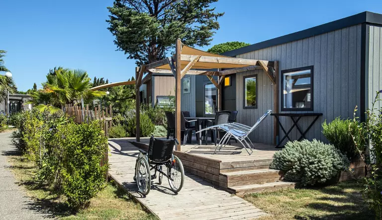 Situé dans l'Hérault, à proximité des plages de la grande bleue, le village de vacances _Les Mûriers_ est un domaine paisible et ombragé situé dans une zone boisée de 8 Ha. A caractère familial, ce domaine regroupe actuellement 220 logements. Vous y séjournerez dans de confortables chalets et cottages.