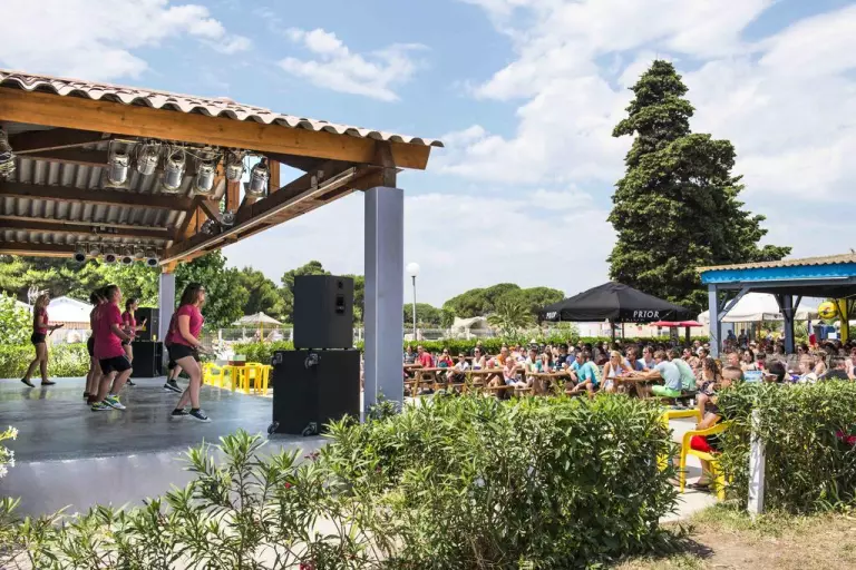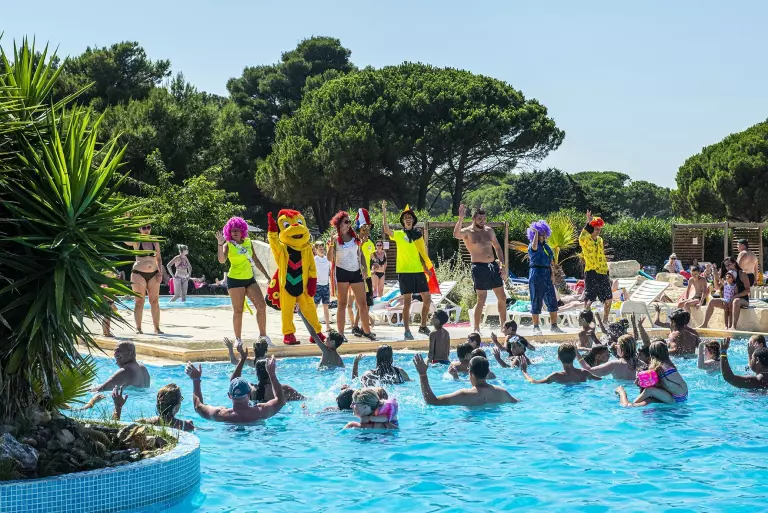 En été, notre équipe d'animation vous accueille pour des moments privilégiés de détente, de loisirs et d'amusement dans une infrastructure d'exception. Chaque semaine, lors de son welcome drink, notre équipe vous offre un verre de bienvenue, l'occasion de directement se plonger dans l'ambiance du domaine tout en découvrant le programme professionnel d'animation. Vos enfants de 5 à 12 ans seront accueillis gratuitement du lundi au vendredi environ 4 heures par jour au mini-club « L'île aux pirates ». Nos animateurs confirmés feront des vacances de vos enfants un succès en leur proposant un large éventail d'activités. Chaque soir en été, les parents pourront assister à la mini-disco et découvrir tous les vendredis le spectacle de leurs petits pirates. Aux Mûriers, vous n'avez pas le temps de vous ennuyer. Chaque semaine, un programme varié d'activités sportives vous est proposé (tournois sportifs, cours d'aquagym, jeux piscine ou apéro, etc.). Notre dynamique équipe assure l'ambiance du domaine chaque soir. Au programme: spectacles des animateurs, danses, cabarets, karaokés, grands jeux, spectacles pour enfants, magiciens, concerts, etc.; un programme synonyme de soirées réussies et inoubliables!