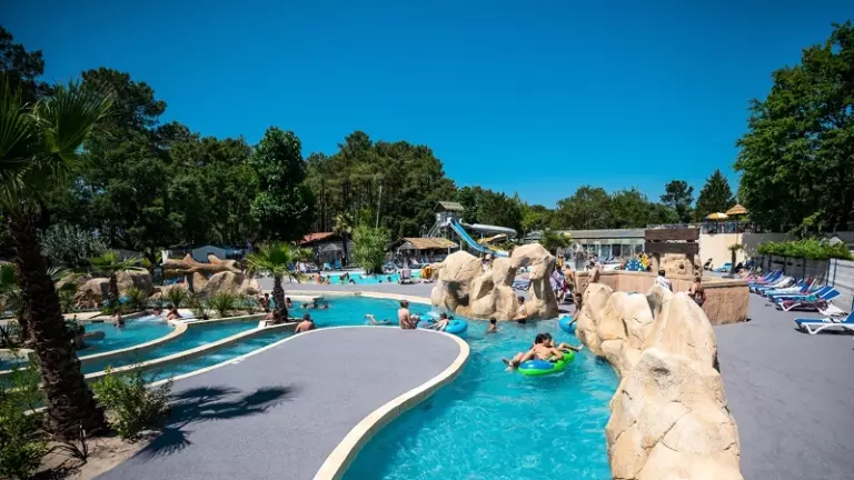 Le camping dispose d'un parc aquatique comprenant une piscine couverte chauffée, 2 piscines extérieures avec pataugeoires et 2 toboggans aquatiques.