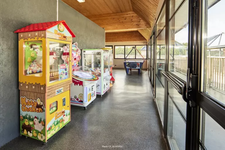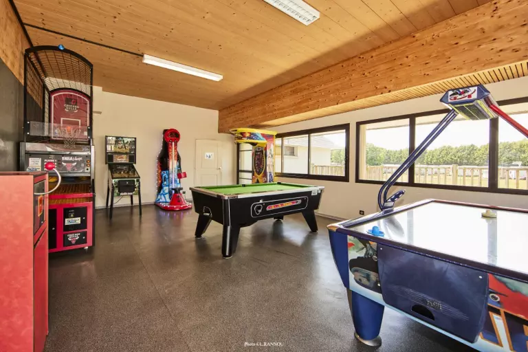 - Salle de jeux avec billard, babyfoot, jeux de basket, moto, hockey sur table et flipper