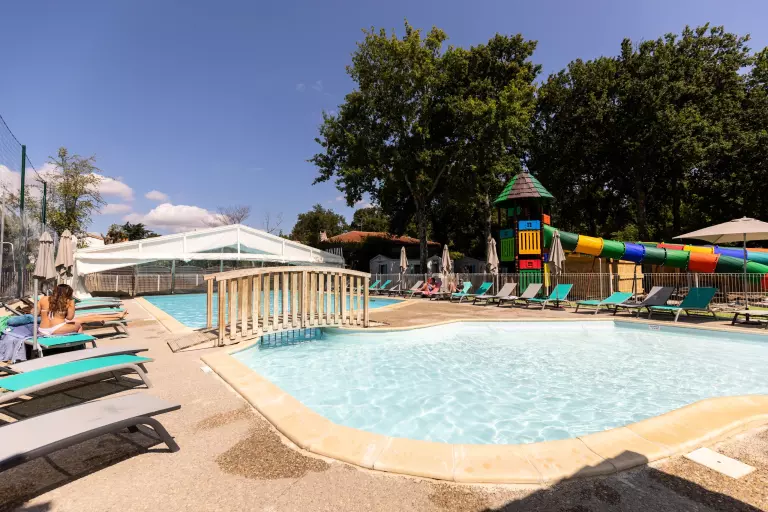 Envie de vous rafraîchir sous le soleil de la Charente-Maritime ? Le camping dispose d'une piscine extérieure chauffée, idéale pour les baignades en famille, et d'un espace aqualudique sécurisé pour les enfants.