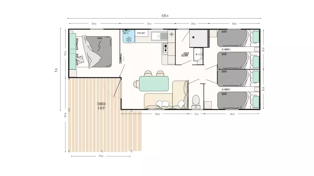 - Taxe de séjour (en supplément) : 0.66€/jour/personne +18 ans - à régler sur place