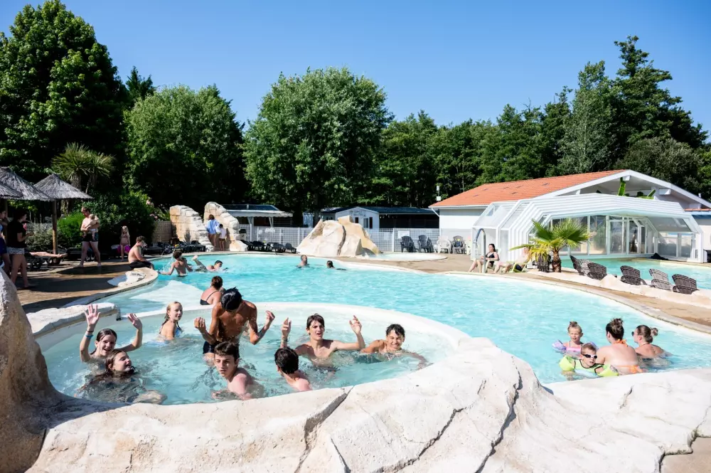 - Parc aquatique avec deux piscines, dont une couverte et chauffée
