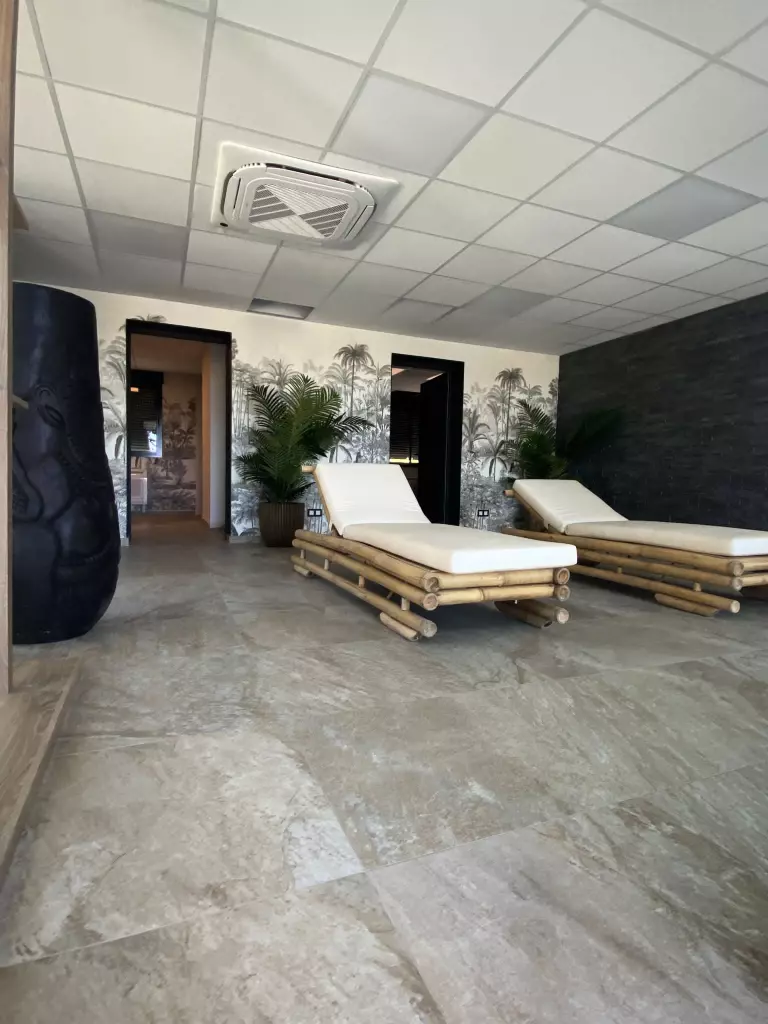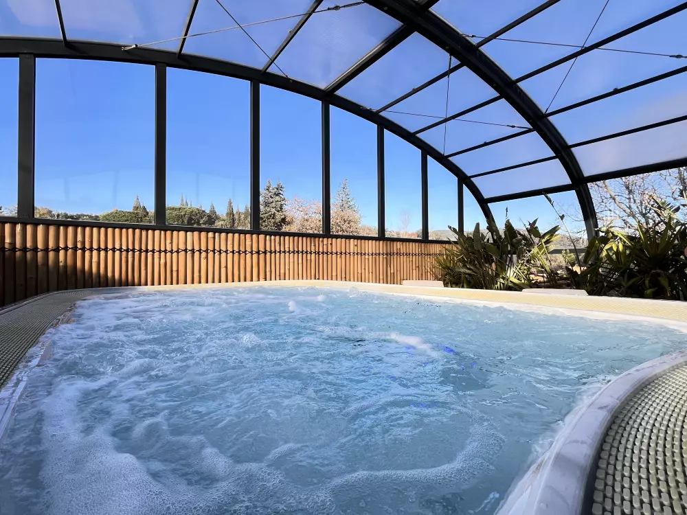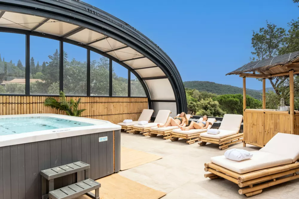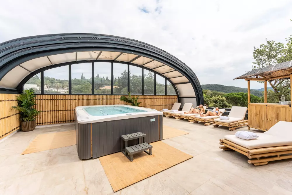 Sur place, vous pourrez profiter d'un bel espace aquatique avec : une piscine chauffée, un bassin de loisir avec ses bancs immergés et une pataugeoire couverte pour les plus jeunes ainsi qu'un SPA avec jacuzzi géant pour 14 personnes avec un éventail de soins et massages.