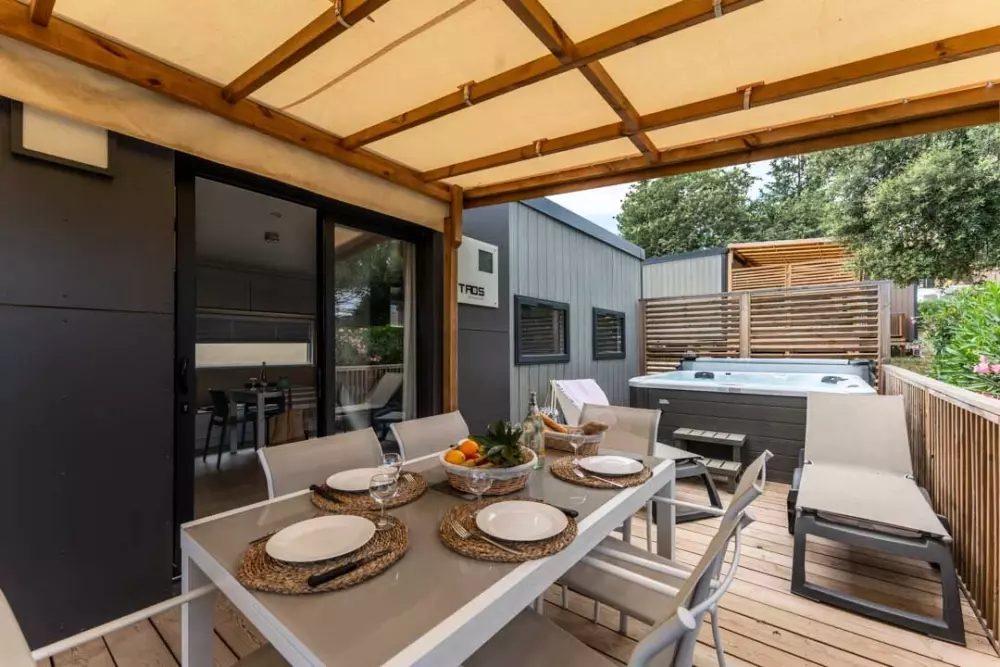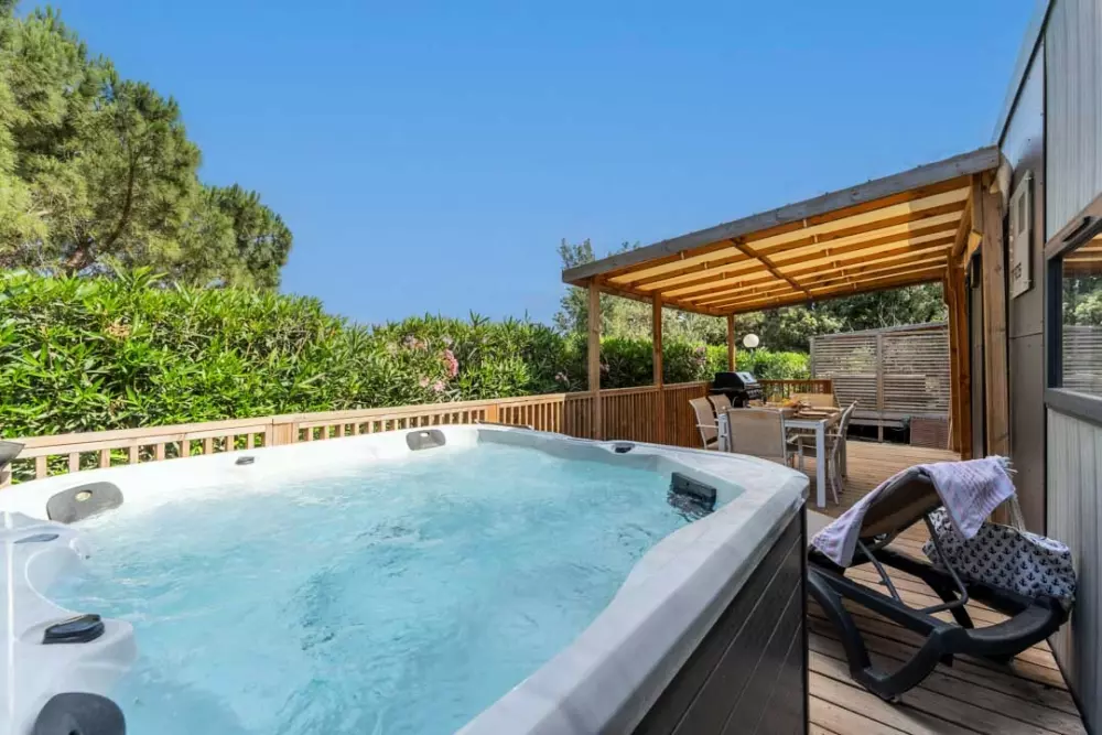 Sur place, vous pourrez profiter d'un bel espace aquatique avec : une piscine chauffée, un bassin de loisir avec ses bancs immergés et une pataugeoire couverte pour les plus jeunes ainsi qu'un SPA avec jacuzzi géant pour 14 personnes avec un éventail de soins et massages. Vous pourrez également profiter du solarium et du sauna.