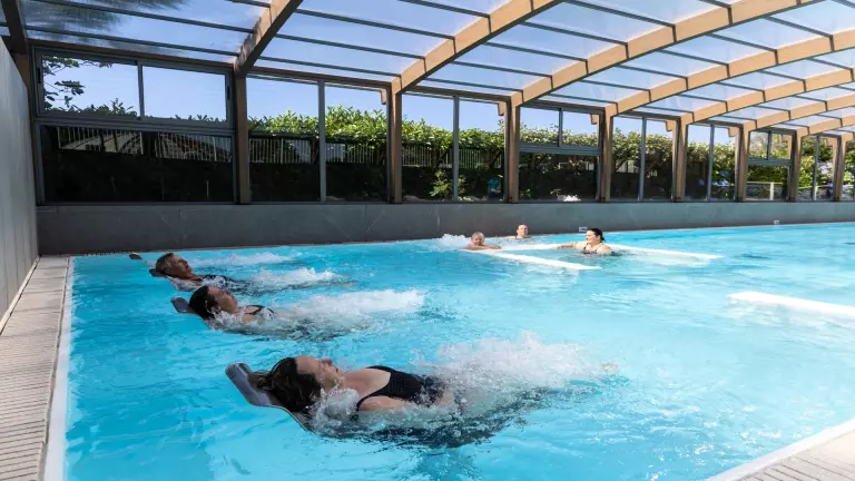 Le camping bénéficie d'un espace aquatique composé de deux piscines couvertes et chauffées du 03/04 au 20/09 et d'un espace extérieur chauffé en juillet-août. La piscine bien-être avec sièges de massage immergés. Pour des belles glissades : retrouvez les toboggans aquatiques en contrebas du camping (ouverts les après-midis du 06/07 au 29/08).
