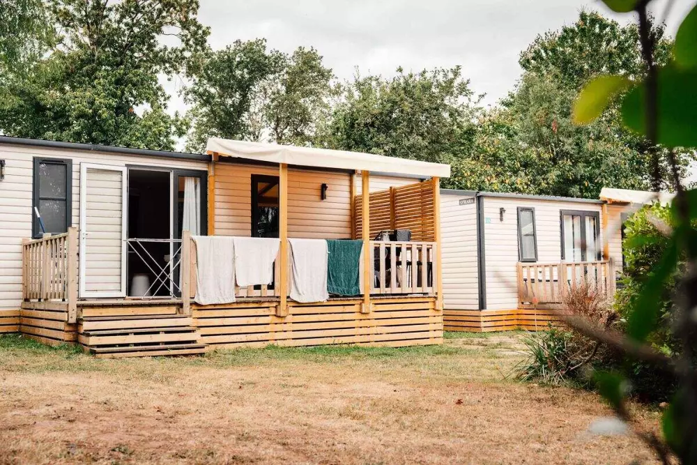 Chaque locatif de notre camping à Clohars-Carnoët est équipé de rangements, d'un espace de vie aménagé, confortable et propice à la convivialité.