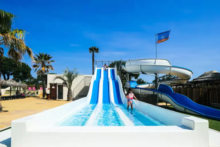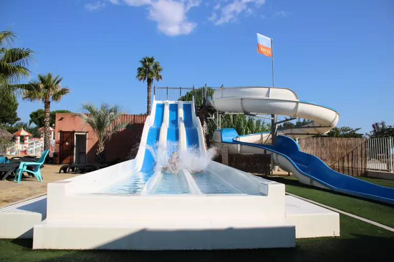 Et pour vous amuser, le parc aquatique dispose d'un toboggan pentagliss 3 pistes, d'un solarium de 100m², ainsi que d'un toboggan tournant slide pour les amateurs de sensations.