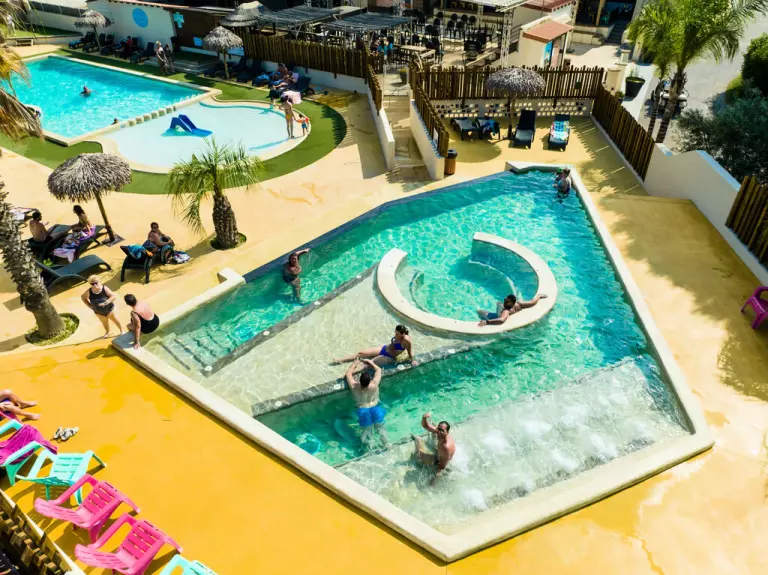 Au sein du camping vous pourrez bénéficier d'un véritable parc aquatique. Ainsi, vous pourrez profiter d'une piscine de 250m², chauffée dès le mois d'avril et pourvue d'un bain bouillonnant et d'un espace détente pour vous détendre. Pour se relaxer au soleil vous pourrez profiter des 1300m² de plages de piscine avec transat.