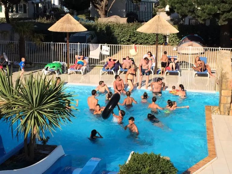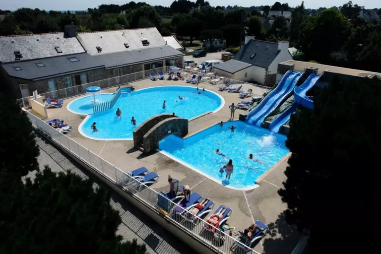 Votre camping dispose d'un espace aquatique avec une piscine extérieure chauffée et de toboggans (toboggan tubulaire et Pentagliss 2 pistes), mais aussi d'une pataugeoire pour les plus petits pour goûter aux joies nautiques en toute sécuité. Détendez-vous au bord de l'espace aquatique, sur les transats, pour profiter des rayons du soleil d'été dans le Morbihan. Bonne humeur garantie au Camping Paradis Les Palmiers, grâce à cet espace aquatique 3 étoiles ! Ouverture du 15 juin au 15 septembre, la selon météo.