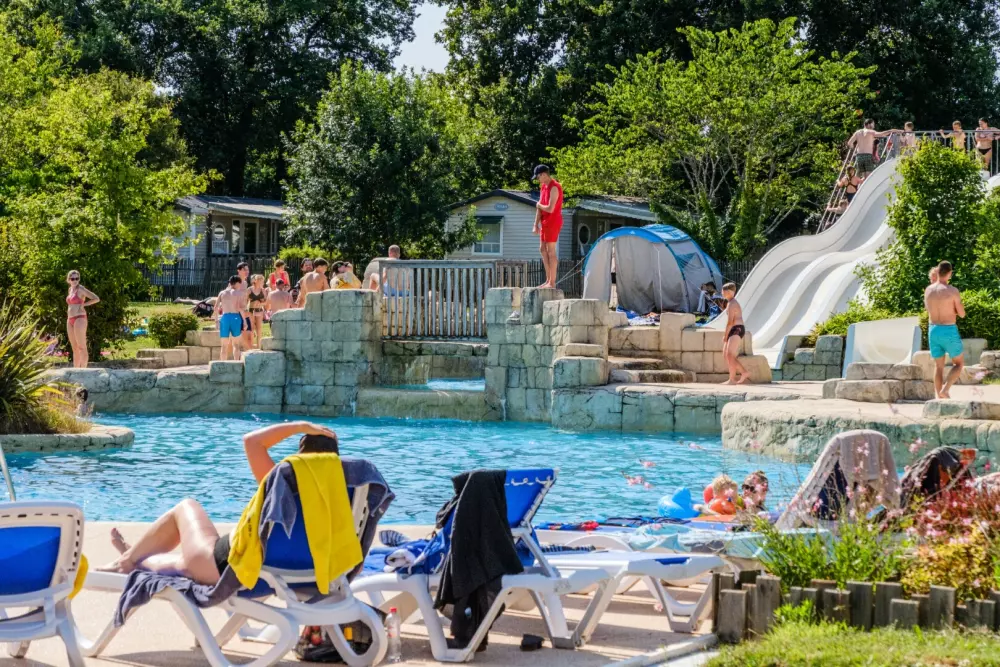 - Grand parc aquatique : piscine extérieure “style lagune”, toboggans, pataugeoire/aqua-ludique et bassin surveillé en saison