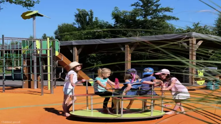 - Aire de jeux pour enfants (jeux à ressorts, balançoires, tourniquets)