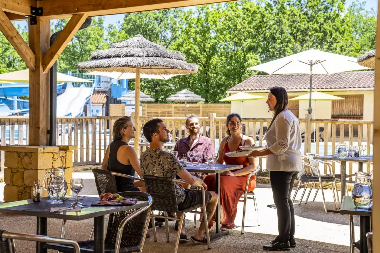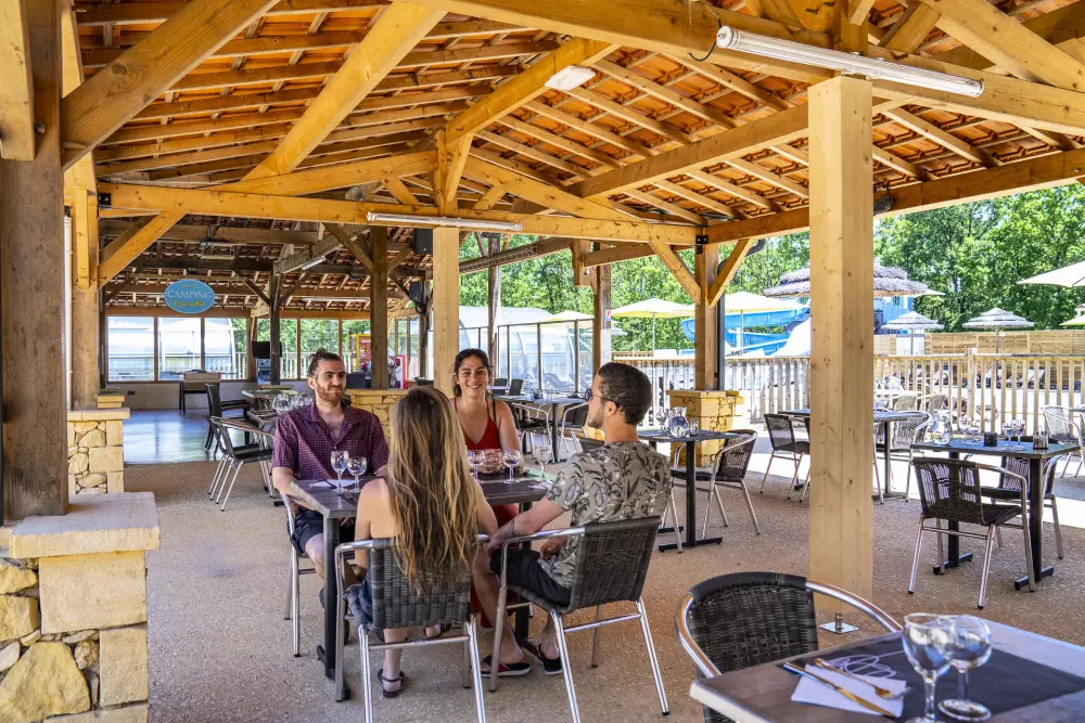 Pour vous restaurer, venez profiter de la terrasse avec vue sur la piscine ou l'intérieur chaleureux. Le restaurant-snack vous propose : petit-déjeuner, dîner ou simplement de prendre un verre dans une ambiance sympathique, en Dordogne.
