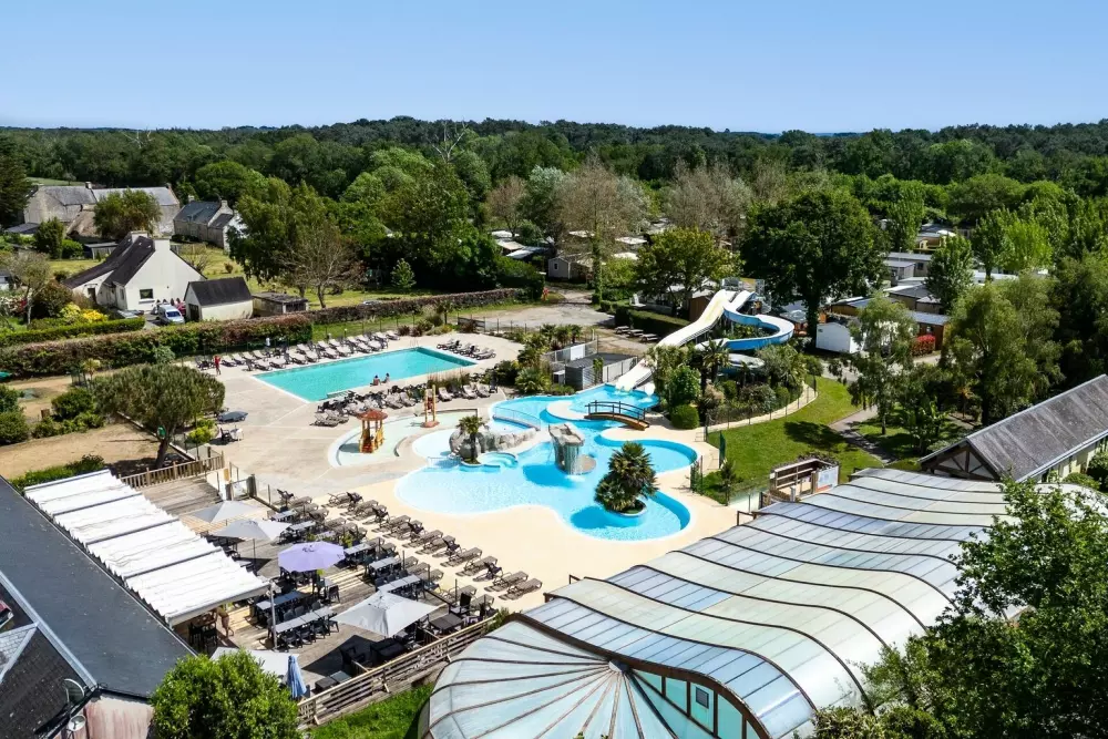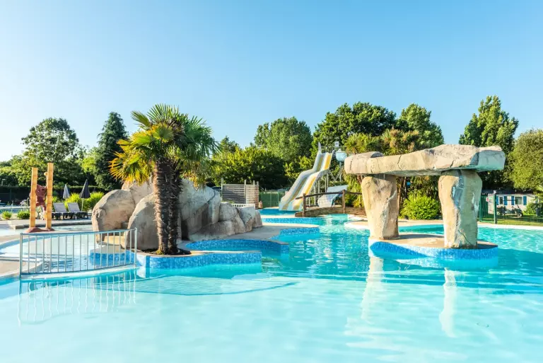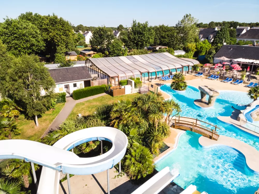 Pour varier les plaisirs, le camping vous propose de profiter d'un espace aquatique* de plus de 650m² composé de toboggans, d'une pataugeoire pour les plus petits, de jeux d'eau, d'une grande piscine extérieure et une piscine couverte chauffée.