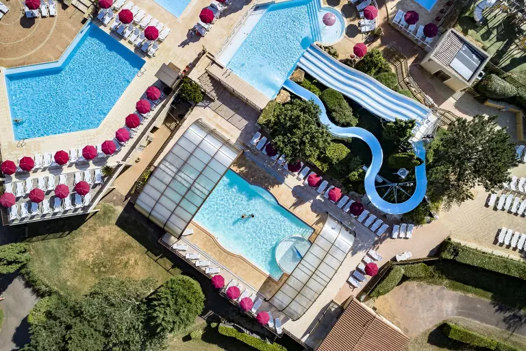 • Parc Aquatique : 2 bassin de nage, toboggan, pentaglisse, jardin d'eau pour enfants