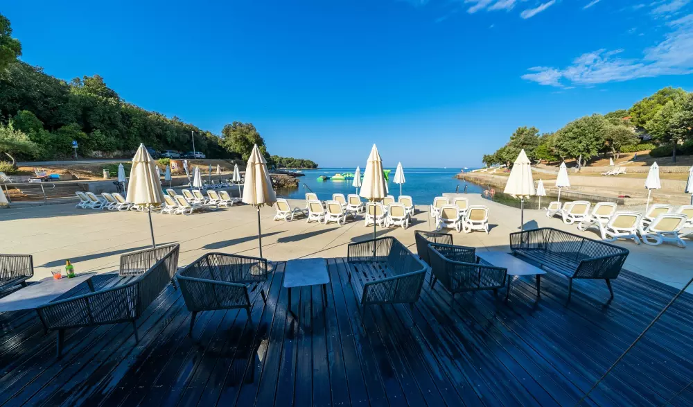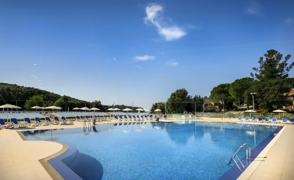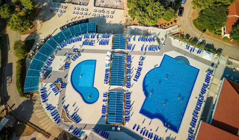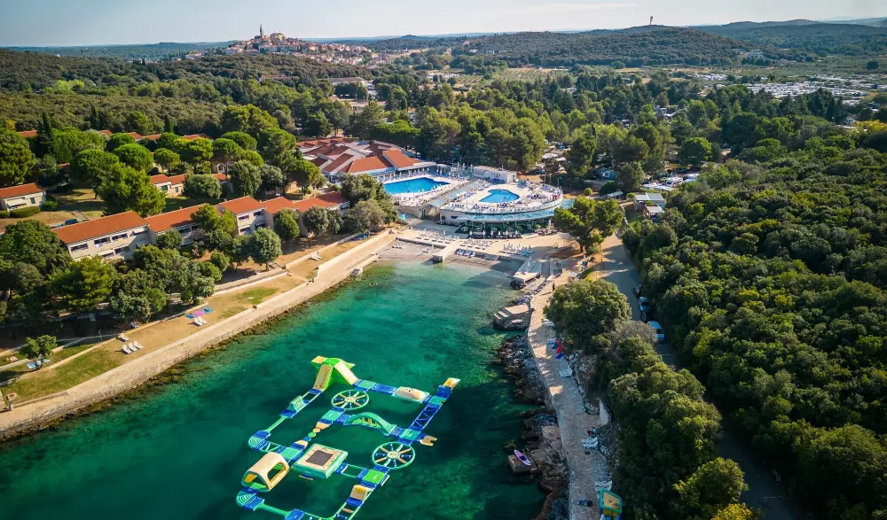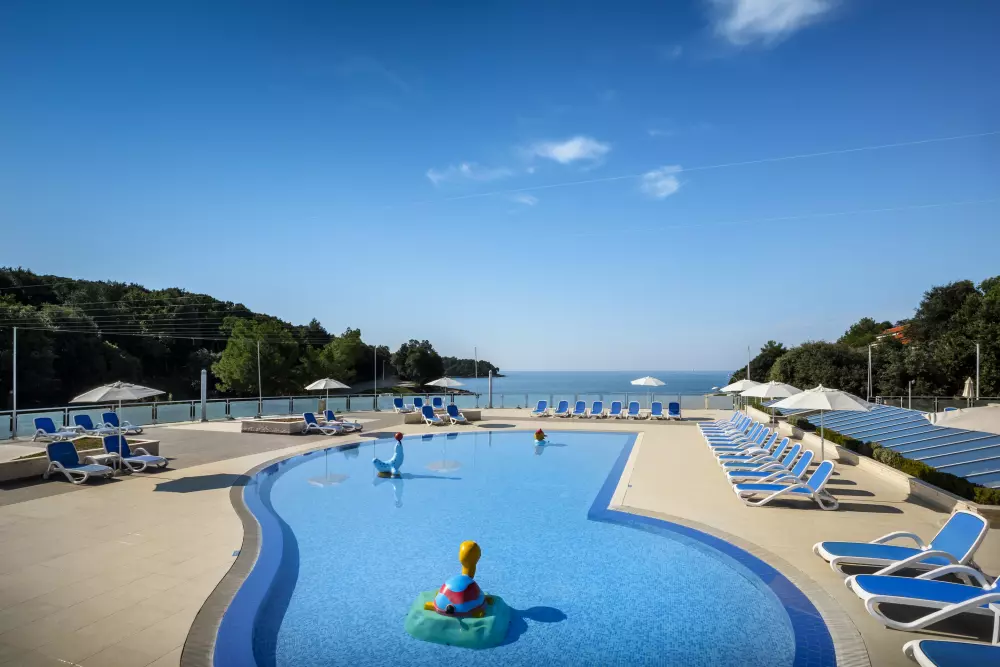 Où que vous vous trouviez au camping, vous profiterez d'un véritable paysage de carte postale. L'espace aquatique est installé face à la mer Adriatique pour que vous puissiez admirer toute sa beauté lors de vos séances de baignade ou de bronzage sur un transat. Vous avez également la possibilité de vous détendre sur la plage pendant que les plus petits s'amusent sur l'aire de jeux flottante sur la baie. Les enfants ont également droit à leur propre piscine grâce au bassin de faible profondeur équipé de jeux d'eau.